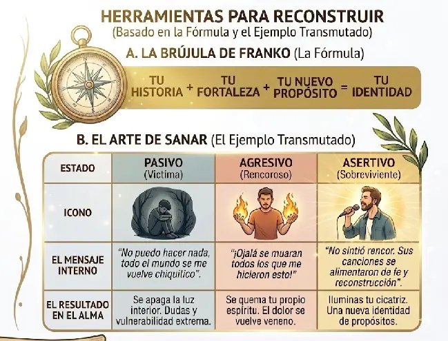 Para conectar con la filosofía de esta pagina orientada a la gestión del bienestar, ésta historia muestra cómo se reconstruye una identidad tras la injusticia. Extraemos los pilares que permitieron su renacer y lo estructuramos de manera gráfica, resaltando los hitos de su restauración emocional: el refugio en la música, la fuerza de la fe y el poder de un propósito renovado.